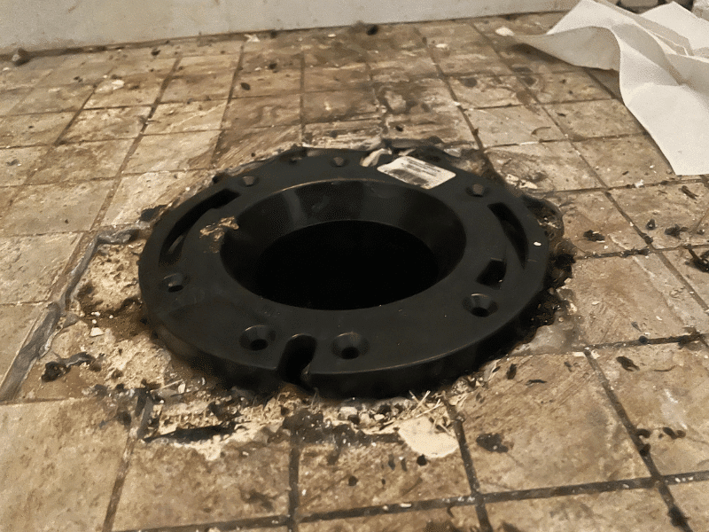 This is the seal between your toilet’s base and the sewage pipe flange under the floor.